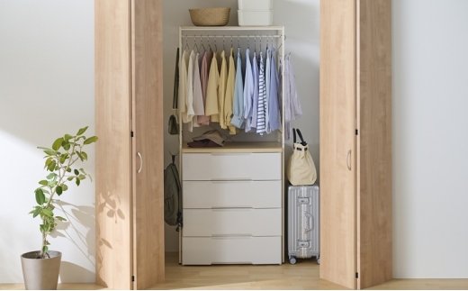 チェストの幅によってコートなど、長物も収納可能。