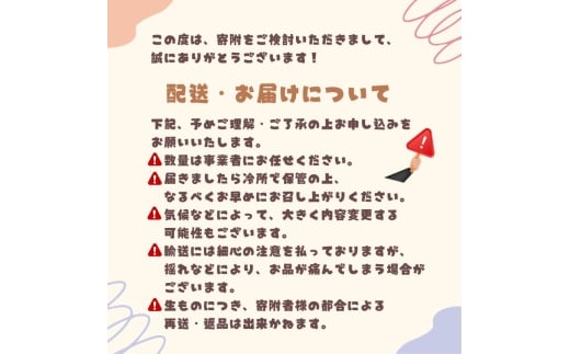 ※生ものにつき、寄附者様の都合による再送・返品は出来かねますので、