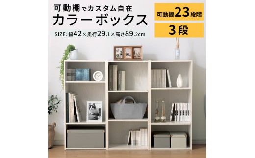 - カラーボックス〔可動棚・3段〕(AKANBR920129-0-WH)