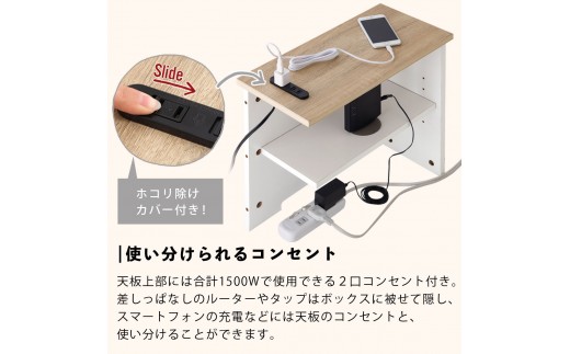 【完成品でお届け】ルーターボックス〔大・左置タイプ〕(オーク)ケーブルボックス コードケース 木製 配線隠し コンセント 付き ケース ルーター サイドテーブル ソファテーブル EKANTC001540-0L-OAK