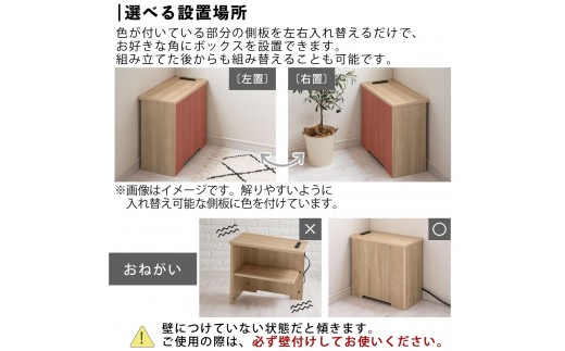 部屋の角にピタリとつける目隠しボックス。コンセントや配線にホコリが被りにくくなっています。