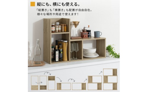 まるでパズルみたいに、左右・縦横を入れ替えて使えるコの字型ラック。組み合わせで使い方が無限に広がります。