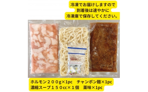 ・【黒毛和牛小腸】博多もつ鍋セット1~2人前[(ホルモン200g・濃縮スープ150cc・チャンポン・唐辛子・乾燥にんにく・柚子胡椒)×各1pc]