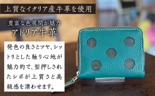 - 【レッド】【職人手作り】イタリア産 アドリア牛革 水玉模様のラウンドファスナー 二つ折り財布タイプ2(選べる15色)《築上町》【たけもとかばん】革製品 レザー 牛革 [ABAM058]