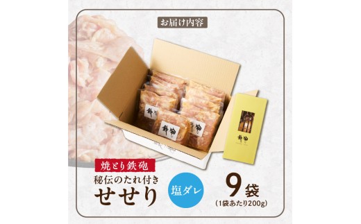 - 焼とり鉄砲 秘伝のたれ付きせせり(塩ダレ)200g×9P_焼とり鉄砲 秘伝のたれ付き せせり 味 塩ダレ 内容量 200g × 9パック やきとりの街 久留米 昭和54年創業 職人 手仕込み オリジナルブレンド 味付け 鶏肉 肉 味付け肉 炒め物 唐揚げ おかず おつまみ 冷凍 小分け 便利_Ax142