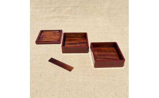 15cm角にくり抜いた重箱です。大きさから弁当箱として使用しても、色々なお料理を保存するために使っても素敵です。くり抜く技は、工芸品として高評価です。香川の伝統技法である後藤塗で仕上げています。