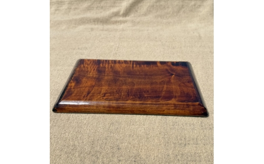 27cmの小さな長角盆で、レンゲをヨコツキにした木地に、マコモを使った象谷塗をほどこした、香川独特の工芸品です。傷もつきにくく使い勝手の良いお盆です。サービス盆として日常使いを楽しんで下さい。飾り物を置いても素敵です。シックなデザイン、色合いなので、洋風なインテリアにも馴染みます。