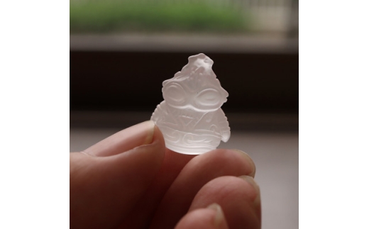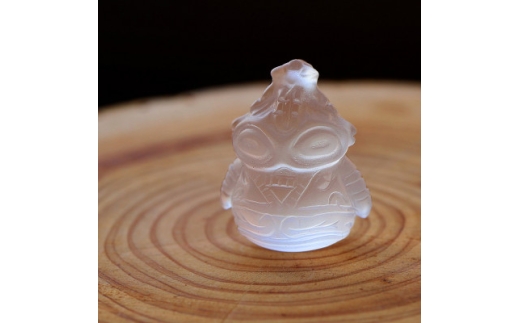 「フロスト水晶どぐりん」は、縄文時代に作られたとされる神秘的な「遮光器土偶」をモチーフに、その特徴的な姿を愛らしくデフォルメしたデザインが魅力です。