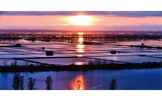 どこまでも続く空と大地、刻々と変化する四季折々の景色は大潟村を訪れた人々を魅了します。