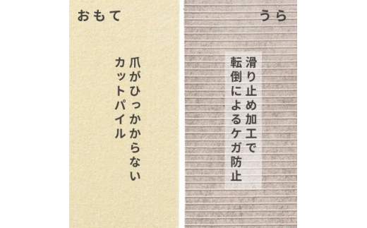・長時間敷いたままのご使用や床材(塩化ビニル、ワックスがけ後のフローリングなど)によっては裏面樹脂が付着したり、床が変色したりする場合があります。