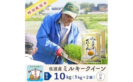 - 【新米予約 9か月定期便】佐渡島産ミルキークイーン 白米10Kg(5Kg×2袋)令和7年 特別栽培米