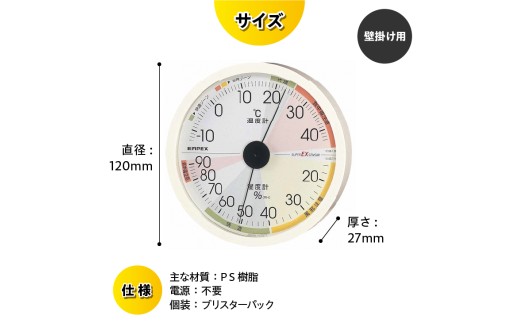 - 高精度UD温・湿度計 EX-2821 温度計 湿度計 本格派 感染症対策 健康管理 スーパーEXセンサ搭載 シンプル 大きな文字盤 見やすい アナログ式 電池不要 壁掛け用 計測器 みずさわ気象計器 エンペックス社 [AJ130]