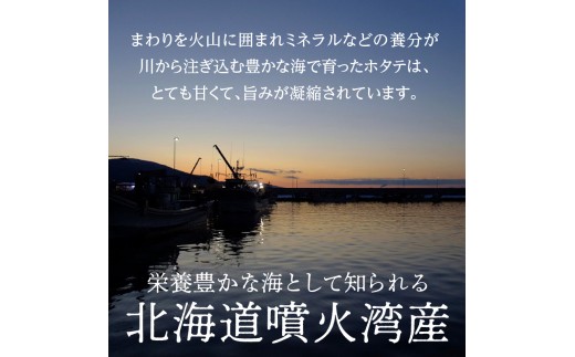 北海道噴火湾で獲れた新鮮なホタテを、美味しさを閉じ込めるため一枚ずつ急速凍結しました。