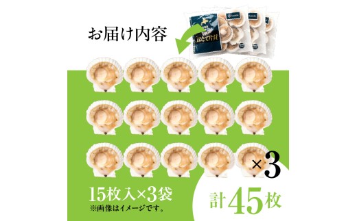 - 北海道噴火湾産ホタテ片貝 Sサイズ (1枚 7~8cm)/15枚×3袋【計45枚】