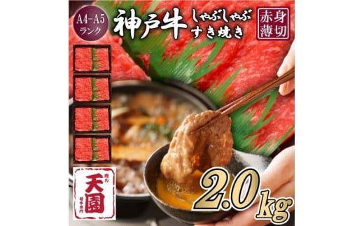 【ふるさと納税】【肉の天園】神戸牛 赤身 モモ・ウデ しゃぶしゃぶすき焼き2000g