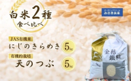 令和7年産 新米 玄米2種食べ比べ 10kg (5㎏×2種) JAS有機米 にじのきらめき、有機的栽培天のつぶ | 有機 有機栽培 精米 お米 米 こめ コメ 福島産 福島県産 南相馬 みさき未来