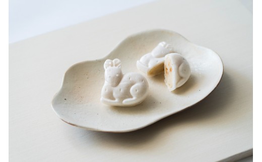 ミルク餡に奈良県産吉野柿と奈良県産はちみつをコーティングしたアーモンドを混ぜ込んで白い最中の皮で挟んでいます。日本茶だけでなく、コーヒーや紅茶にも合う、新しい奈良銘菓として親しまれています。