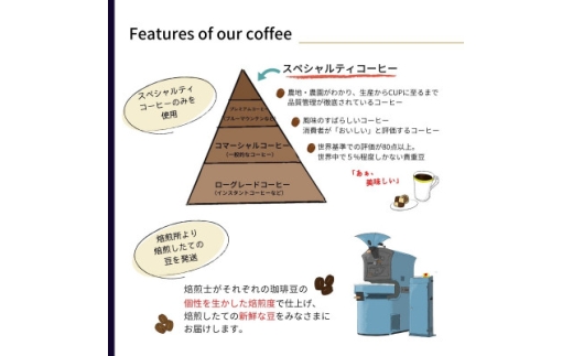 当店は品質管理が適正になされ、栽培地域の特性が生かされたスペシャルティコーヒーのみを取り扱っております。
