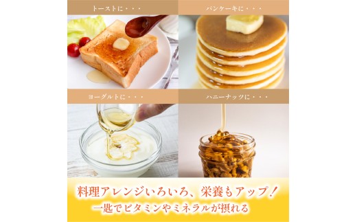 トーストやパンケーキ、ヨーグルト、ハニーナッツなど一匙でビタミンやミネラルが摂れます。1瓶は、180g入りで毎日のトーストなどに使えば約一ヶ月で使い切れるちょうどよい容量となっております。