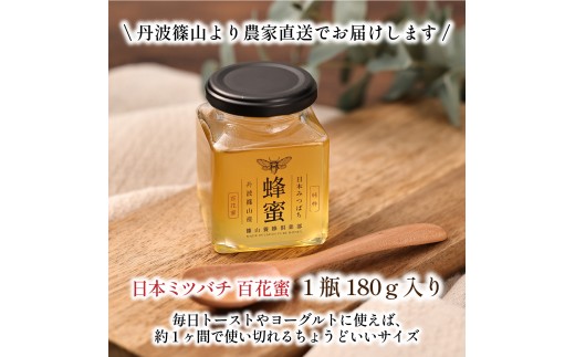 丹波篠山産 日本蜜蜂百花蜜のハチミツ 180g×2瓶 はちみち ハチミツ 蜂蜜 非加熱 生 無添加
