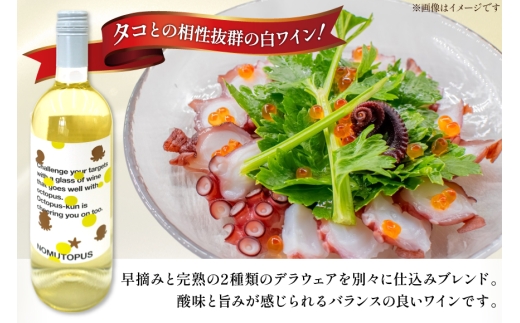 目標へのチャレンジを応援する町の人気者、マスコットキャラクター「オクトパス君」が自信を持ってオススメする、タコとの相性抜群の白ワインです。