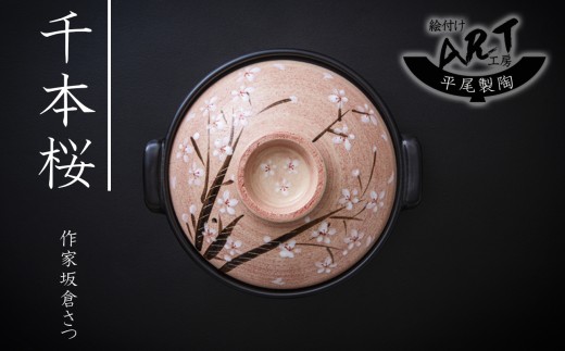 - 暮らしの美術品 絵付けアーティストの個性が光るHandmade土鍋。絵付けART工房・平尾製陶 土鍋8号「千本桜」 【手描き、土鍋、ハンドメイド、アート、デザイン、鍋、 家庭用、3人用、4人用、3人前、4人前、家族、冬、煮込み、手 芸、工芸、三重県、四日市市、ふるさと納税】