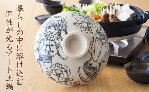 暮らしの美術品 絵付けアーティストの個性が光るHandmade土鍋。絵付けART工房・平尾製陶 土鍋9号「双幽童子」【手描き、土鍋、ハンドメイド、アート、デザイン、鍋、 家庭用、4人用、4人前、家族、冬、煮込み、手 芸、工芸、三重県、四日市市、ふるさと納税】