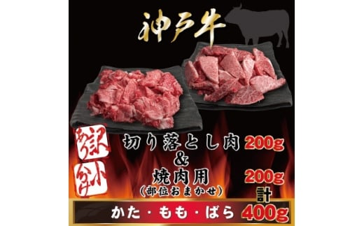 ・神戸牛(神戸ビーフ)[もも・かた・ばら 切り落とし肉200g、焼肉用200g 計400g]