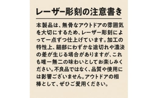 レーザー彫刻の特性上、細部にカスレや彫刻の濃淡が生じる場合があります。