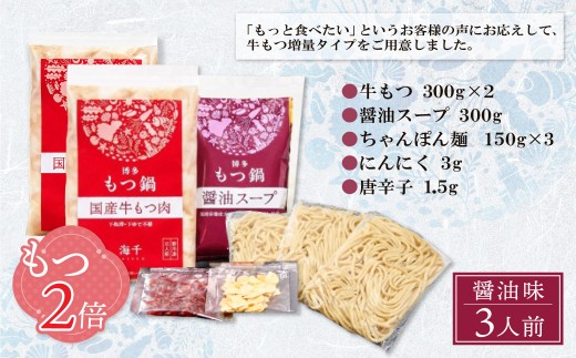• W71-05 【牛もつ2倍】博多もつ鍋(醤油味)3人前  もつ鍋 ホルモン 肉 鍋 福岡 博多 もつ ギフト グルメ おすすめ 鍋 冬 増量 もつ2倍 冷凍