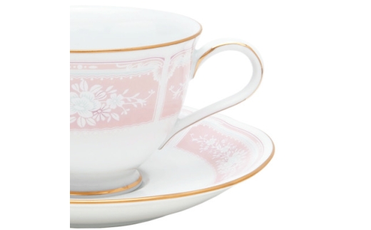 1988年の発売から20年が経過した2008年、長年愛されてきたレースウッドゴールドに色変りのピンクが追加されました。アイテムはティー・コーヒー碗皿、マグカップ、18cmプレート。差色としてブルーとのミックス&マッチをお楽しみください。