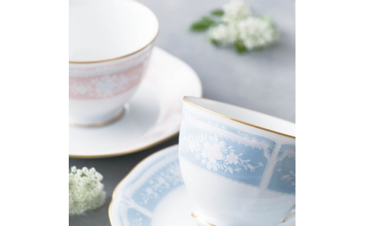 ・ノリタケ【レースウッドゴールド】カップ&ソーサーペア[2客(ブルー1客・ピンク1客)]