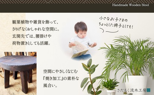 - 手作り木製『丸』椅子 130P7801 / 東北 秋田 大館 ベンチ 椅子 いす イス 秋田県 大館市 さだもく 家具 インテリア 飾り花台 焼き加工 木製品 木工 木製 腰掛け 荷物置き シンプルデザイン スツール