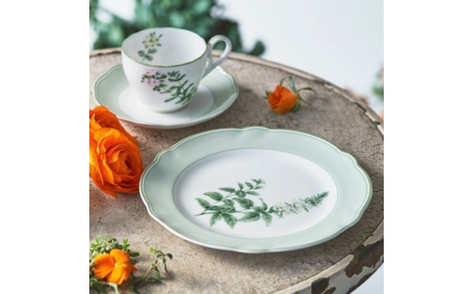 「イングリッシュハーブズ」に描かれるのはボタニカルアートのように繊細なハーブたち。グリーンを基調にしたデザインは、どんなお料理も引き立ててくれます。