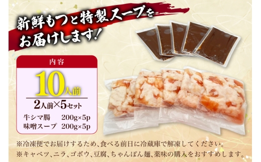 もつ鍋 訳あり 博多 味噌もつ鍋 2人前 5セット 計10人前 [くしだ企画 福岡県 筑紫野市 21761325] もつ鍋セット 福岡 味噌 モツ鍋 モツ鍋セット