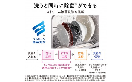 除菌効果は食器の量や位置・汚れの程度により異なります。