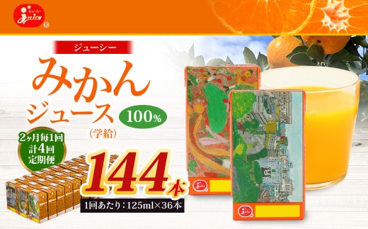 - 【2ヶ月毎4回定期便】 ジューシー みかんジュース 100% (学給) 125ml×36本 みかん ミカン 蜜柑 ジュース オレンジジュース 飲料 紙パック 国産 熊本県