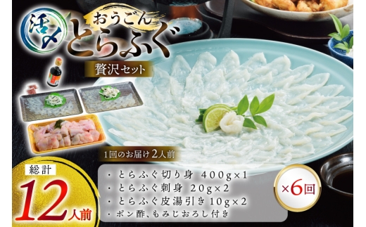 - ふぐ 刺身 ふぐ鍋セット 活〆 おうごんとらふぐ 贅沢セット 2人前 6回 定期便 [松永水産 長崎県 平戸市 hr42bgy400071] ふぐ刺し とらふぐ フグ 河豚 てっさ てっちり ふぐ鍋 湯引き 魚介 さかな お刺身 刺身用 さしみ 冷凍 海鮮
