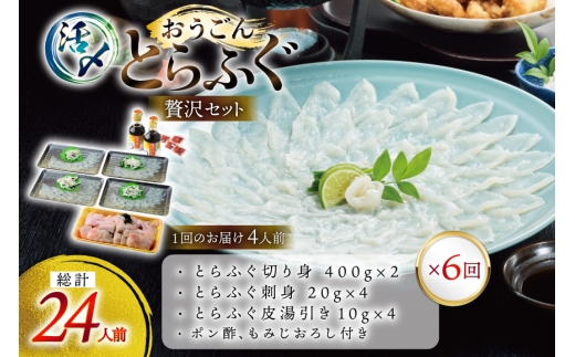 - ふぐ 刺身 ふぐ鍋セット 活〆 おうごんとらふぐ 贅沢セット 4人前 6回 定期便 [松永水産 長崎県 平戸市 hr42bgy400073] ふぐ刺し とらふぐ フグ 河豚 てっさ てっちり ふぐ鍋 湯引き 魚介 さかな お刺身 刺身用 さしみ 冷凍 海鮮
