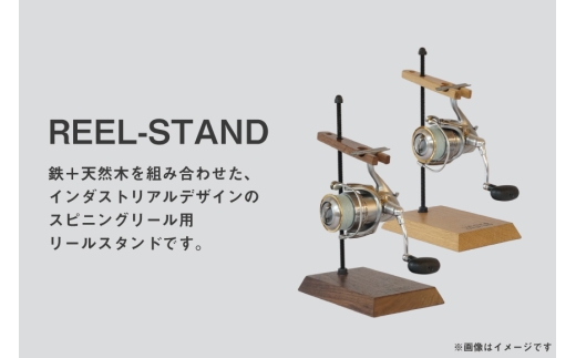 鉄+天然木を組み合わせた、インダストリアルデザインのスピニングリール用リールスタンドです。