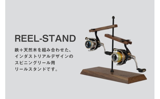 鉄+天然木を組み合わせた、インダストリアルデザインのスピニングリール用リールスタンドです。