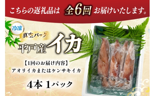 海鮮 魚介 イカ 4杯 1パック(冷凍) 6回 定期便 [舘浦漁業 長崎県 平戸市 hr42bgy420359] おつまみ 新鮮 刺身 瞬間冷凍 冷凍 コリコリ 直送 冷凍 個包装 真空パック