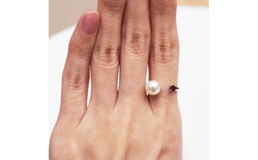 S085-460_あこや真珠 リング 7.5mm - 8mm ホワイトピンク ガーネット 真珠 (G:14号)