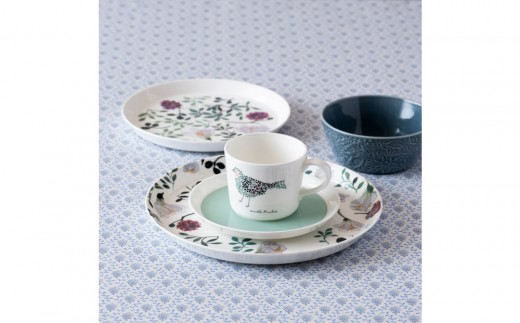 自然と共に暮らし四季の花々や風景を描くアンナ・エミリア。彼女の愛らしく深みのあるデザイン画をテーブルウェアに彩りました。
