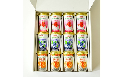 ・ヨーグ・ヨーグ寿太郎みかん〔190g×4静岡県〕原材料:はっ酵乳(牛乳、砂糖、乳製品)、果粒、砂糖、みかんペースト、脱脂粉乳、砂糖・ぶとう糖液糖、乳製品、寒天/酸味料、安定剤(CMC)、増粘剤(加工デンプン、増粘多糖類)、(一部に乳を含む) 成分:エネルギー126kcal、たんぱく質3.9g、脂質1.8g、炭水化物24.8g、食塩相当量0.4g