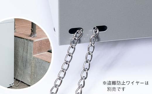 背面に柱などと繋ぎ盗難防止ワイヤー(別売)を通すフック付き。