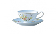 【ラマージュ】はデザイナーが旅をして見た数々の庭園と想像上の庭園風景が重なり合って生まれました。さわやかなブルーカラーをバックに、幸運を運ぶと言われる青い鳥や、新しい出会いや変化の訪れを表す蝶が飛び交い、鳥たちの歌や花々の香りがテーブルから立ち上がってくるようなコレクションです。
