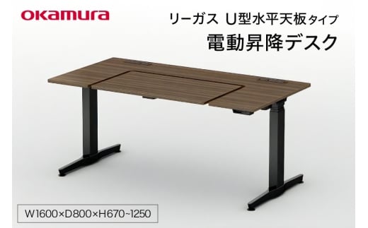 リーガス U型水平天板タイプ 1600W プライズウッドダーク 1点 [メコム 山形県 高畠町 tk06ays970003] 机 家具 自宅用 書斎 国産 オカムラ テーブル
