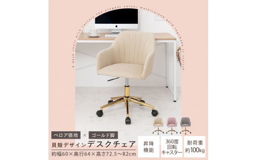 - 【完成品でお届け】デスクチェア(モーヴピンク)デスクチェア 貝殻 チェア シェル型 キャスター付き 椅子 おしゃれ パソコンチェア 回転 オフィスチェア 昇降 ベロア調 ゴールド脚 韓国インテリア CKANHR100237-0-PI