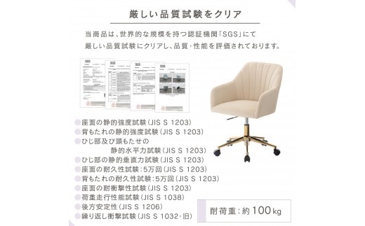 ベロアの張地とゴールド脚がおしゃれなキャスター付きデスクチェアです。